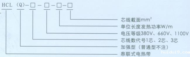 HCL(Q)-B-380-40-800表示电压为380V,B型结构,每米功率为40W,总长为800M的加强型串联式恒功率电热带。