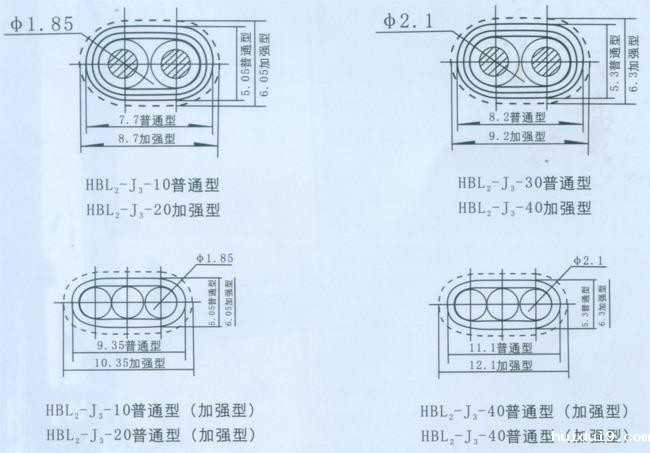 例:a.HBL2(Q)-J3-30表示每米功率为30W的单相加强型恒功率并联电热带